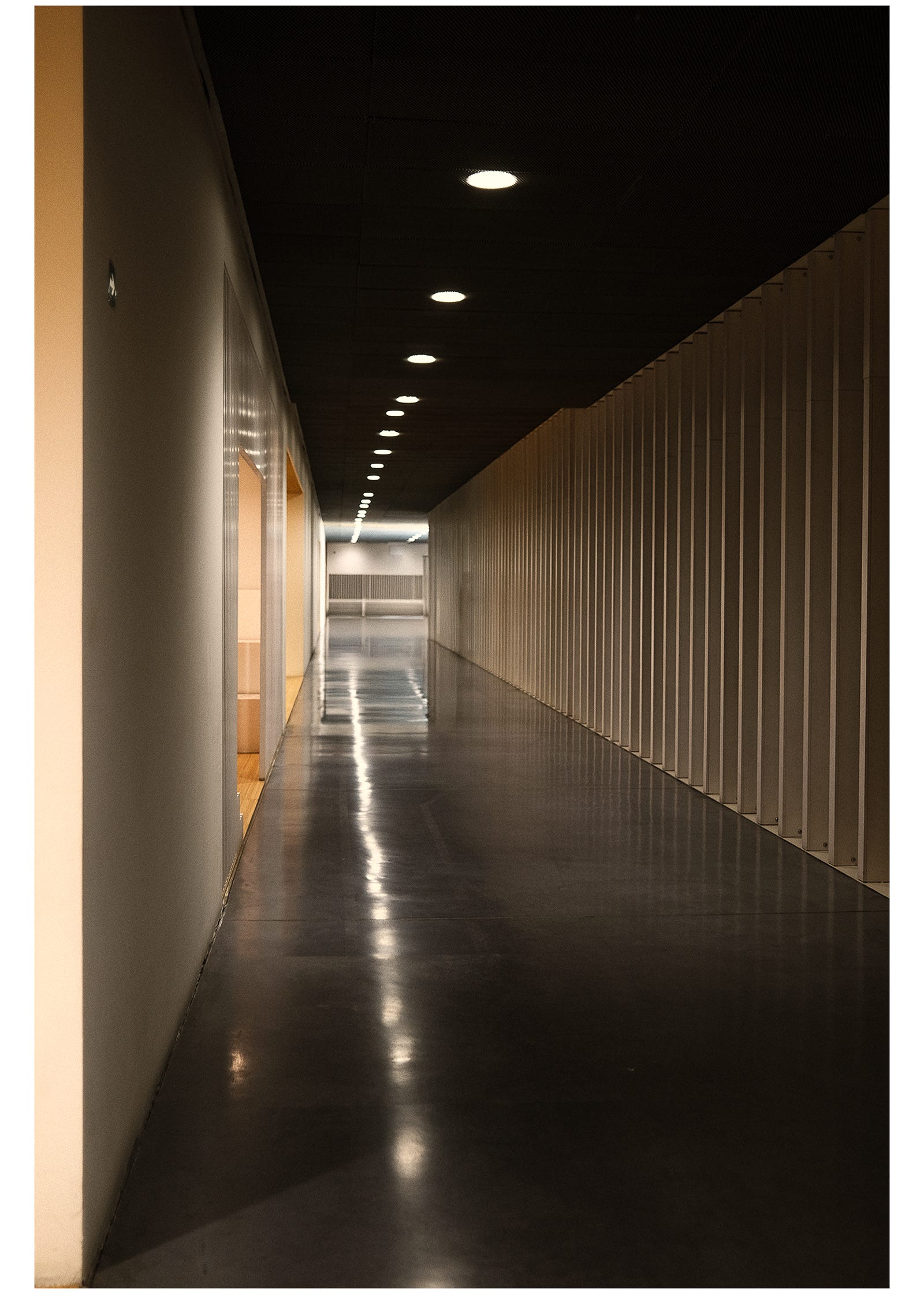 Fianlmente, o imagine de pe culoarele lungi, aproape aseptice din Centre Pompidou Málaga. Muzeul este primul centru Pompidou deschis în afara Franței și funcționează din 2015 într-o clădire modernă, recognoscibilă prin cubul său de sticlă colorată aflat la exterior, și găzduiește o selecție rotativă de lucrări din colecția permanentă a Centrului Pompidou Paris, alături de expoziții temporare dedicate artei moderne și contemporane.