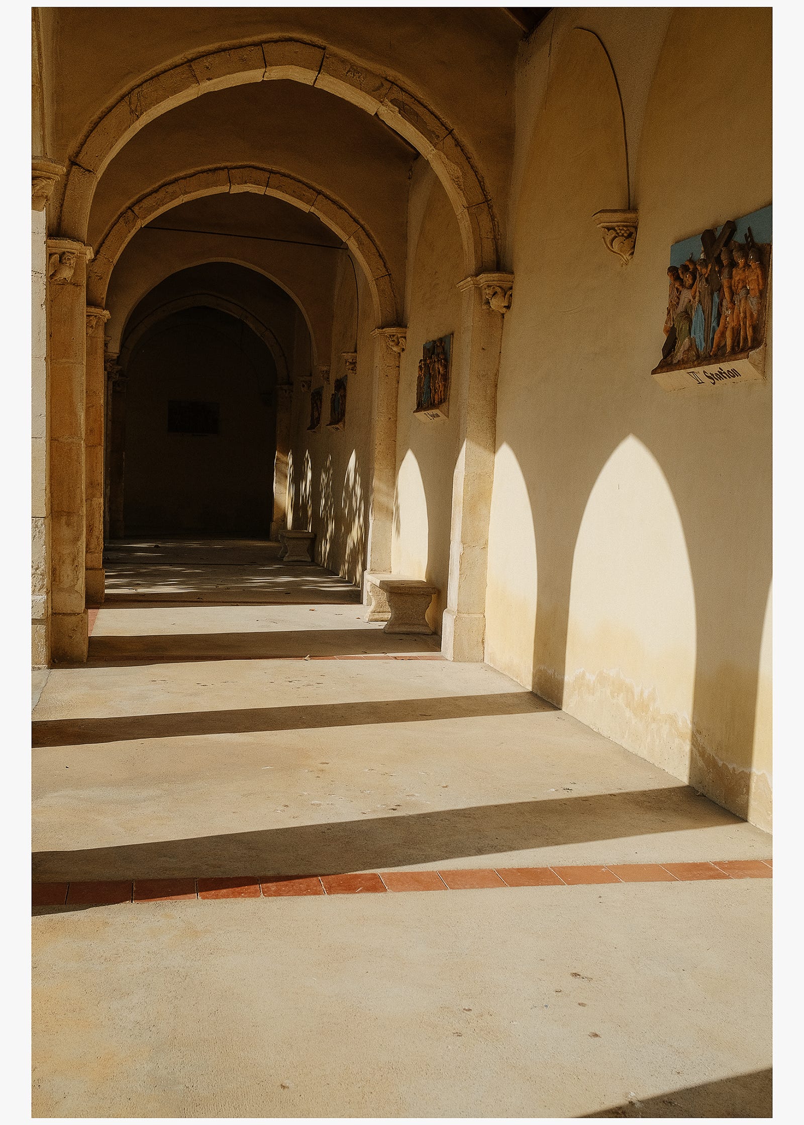 Mai departe, iată-ne ajunși în Occitania. Le Calvaire din Sallèles‑d’Aude, construit începând cu 1862, este un mic ansamblu religios format dintr-o capelă, un coridor acoperit cu reliefuri ilustrând momente din Drumul Crucii, și câteva sculpturi. Arhitectura este simplă, cu arcade din piatră și o atmosferă liniștită, specifică locurilor de reculegere din secolul al XIX‑lea. Lumina intră în coridoare printre arcade și pune în evidență piatra deschisă la culoare. Ca fapt divers, Calvaire-ul a fost ridicat la inițiativa lui Sophie Viramont, care a dorit să marcheze astfel pierderea soțului și a copiilor ei. Proiectul a devenit un spațiu de explorare a memoriei și reflectare pentru comunitate, un loc accesibil tuturor celor care trec prin regiune.